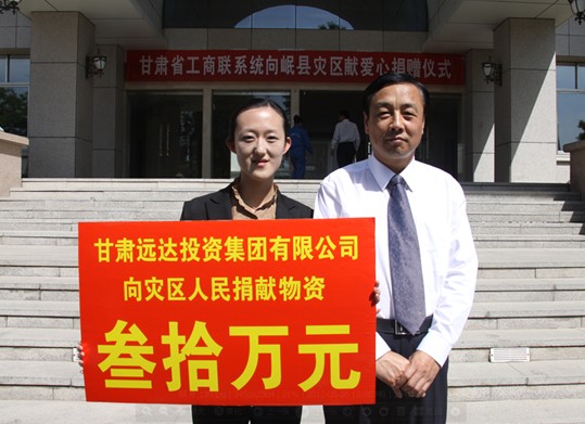 [2012-5-23]扶危濟(jì)困 奉獻(xiàn)社會(huì) [2012-5-23]心系災(zāi)區(qū) 大愛(ài)遠(yuǎn)行 [2011-4-10]甘肅遠(yuǎn)達(dá)集團(tuán)向青海玉樹(shù)地震災(zāi)區(qū)捐助價(jià)值30萬(wàn)...